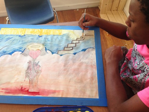 Ian working on his painting. Previous Published March 30, 2017 at 800 × 600 in Painting in the MNA Foster Youth Program Ian works on finishing a drawing using color pencil and watercolor.