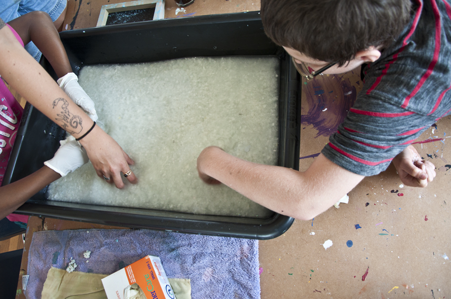 Jessi and students mix paper pulp Previous Next Published June 17, 2017 at 900 × 598 in Artist Jessi Hamilton Visits the MNA Foster Youth Class
