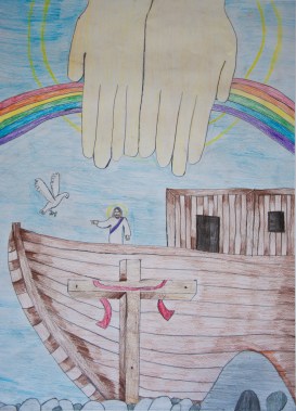 “Justin” did this amazing depiction of Biblical narratives combined into a single drawing on his own after I first met him. He told me he couldn’t draw…and then did this. He is an avid reader, and very good at using his creativity to make narrative works of art. Even when he doubted himself he would try to push beyond what he thought he could do. A fantastic student!