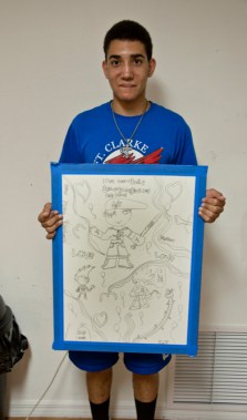 Kendrick shows off his first drawing in class! Previous Next Published May 16, 2017 at 500 × 852 in MNA Foster Youth Gallery
